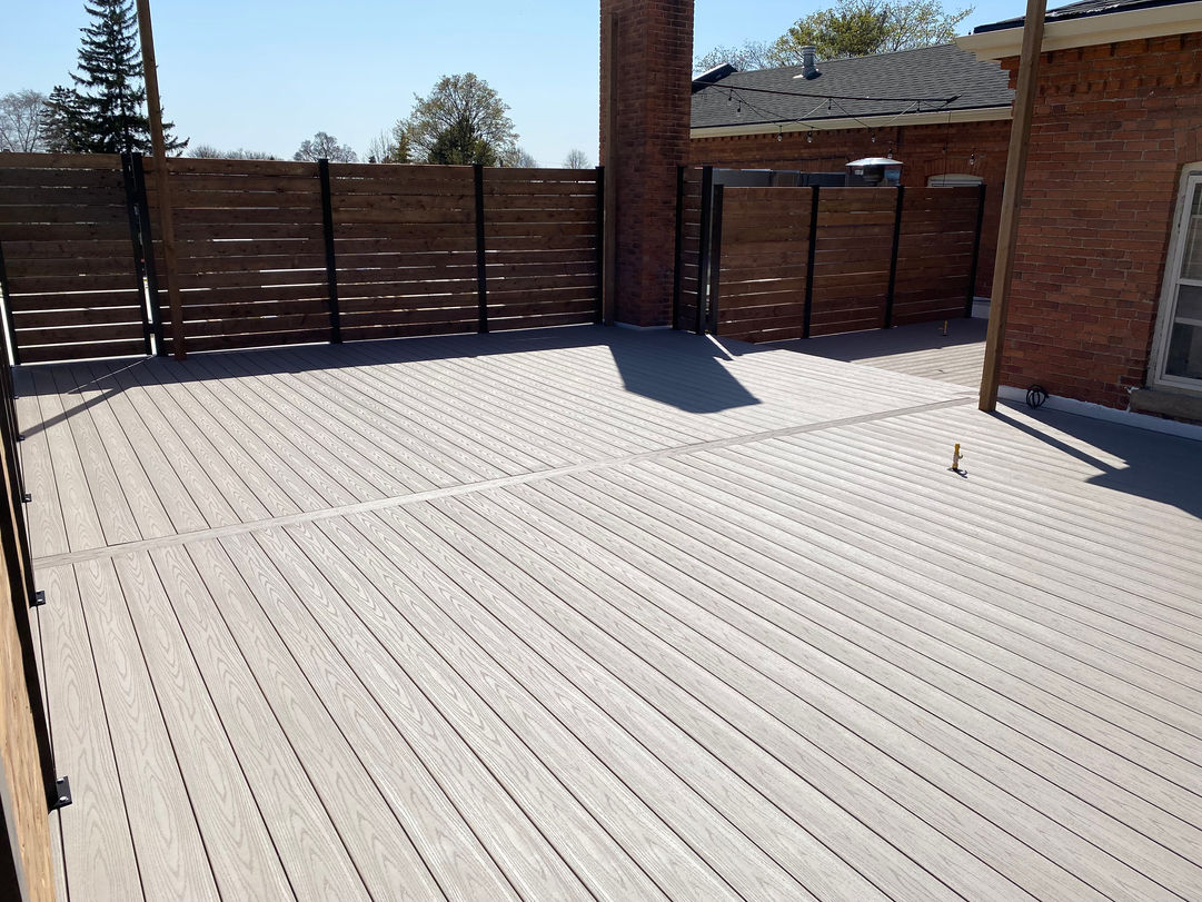 Installed helical screws, framed deck, applied Azek decking surface, built BC fir covered pergola and gazebo, installed Regal LED railings, and integrated flush mount low voltage stair lighting.