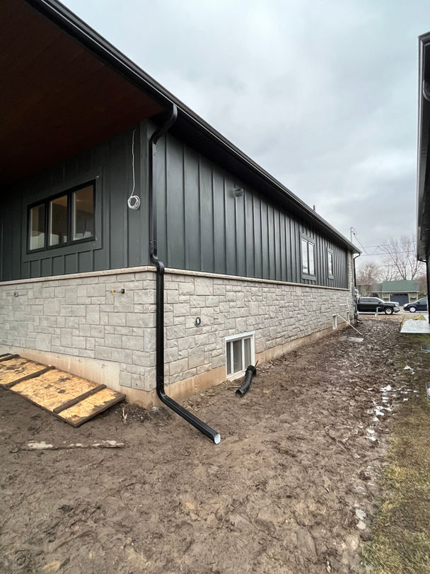 Completed a full exterior renovation using Celect PVC siding, complemented with black soffit, fascia, and eavestrough.