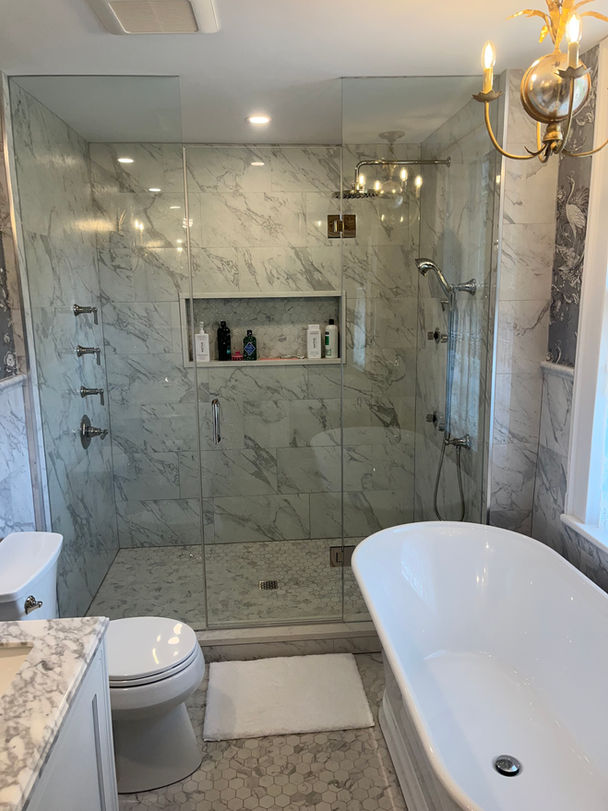Undertook a complete bathroom renovation including reframing, drywalling, tiling shower, walls, and flooring, and installing new fixtures and vanity.